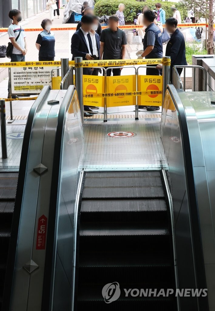 현재 사고가 난 에스컬레이터는 양방향에 안전 펜스와 출입 통제선이 설치돼 통행이 제한된 상태이다.