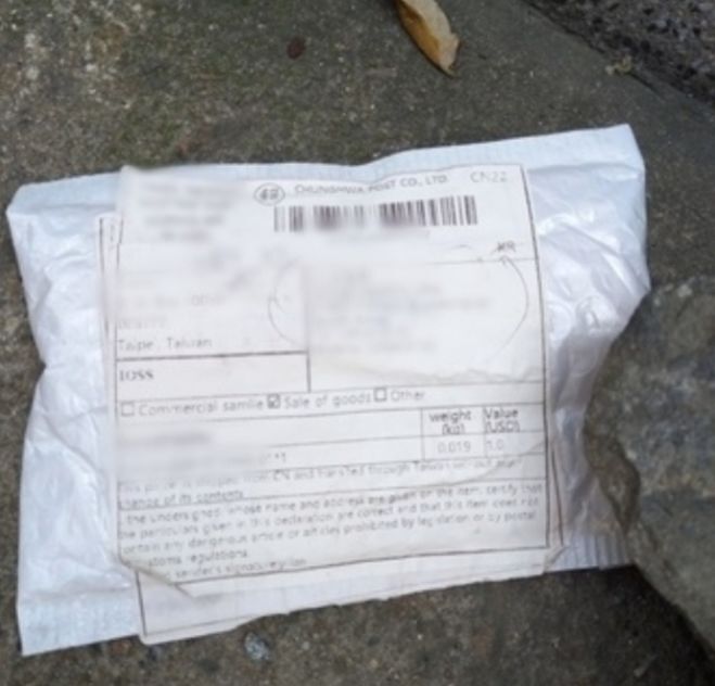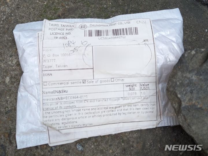 [경북=뉴시스]24일 전국 각지에서 정체불명의 해외 우편물 발송 사례가 나타나 일부 소비자들의 구매 불안으로 이어지는 모양새다. 사진은 경북 지역의 정체불명 우편물 사진. (사진=경북경찰청 제공)